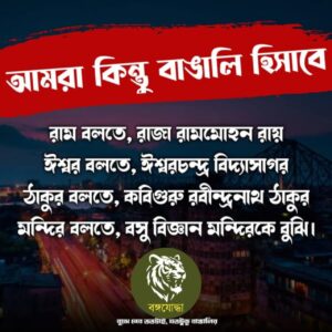 বাংলার দুর্ভাগ্য বয়ে এনেছিল, রাজনৈতিক নীতিমালা। আর সৌভাগ্য ফিরিয়ে আনতে প্রয়োজন আরেকটি রাজনৈতিক নীতিমালা। তার জন্য বাঙালি জাতিকে ঐক্যবদ্ধ হতে হবে। বিভাজিত হয়ে যেভাবে বাঙালি চলেছে, তা কিন্তু ভয়ঙ্কর ভবিষ্যতের দিকে নিয়ে যাচ্ছে হাজার বছরের সভ্য এই সাহিত্য, সংস্কৃতি-প্রিয় বাঙালি জাতিকে। আর এই সৌভাগ্যের রাস্তা তৈরি করছে বাঙালির প্রিয় সংগঠন, বঙ্গযোদ্ধা।