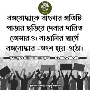 আমাদের সঙ্গে একাত্ম হয়ে আসুন, আমরা বাংলা ও বাঙালির হারাতে বসা গৌরব ও উজ্জ্বল ইতিহাসকে জাগ্রত রাখি। আমাদের মনীষীদের মূল্যবান সাহিত্য ও বাঙালি জাতির হাজার বছরের সভ্যতাকে টিকিয়ে রাখি। পৃথিবীর সমস্ত জাতি-ই নিজের জাত্যাভিমান মাথার মুকুট করে রাখে। কেননা, নিজের জাতীয়তা না থাকলে আত্ম পরিচয় বিলুপ্ত হয়ে যায়। আমাদের সঙ্গে যোগাযোগ করুন।